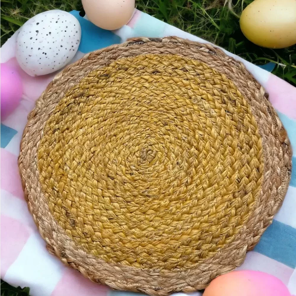 Handcrafted placemats, made with jute. Give your table a stylish and elegant look. Very easy to clean as it can be hand washed. It replaces the plastic made mats and save the environment from plastic. available in pack of 2 in 2 different colours.