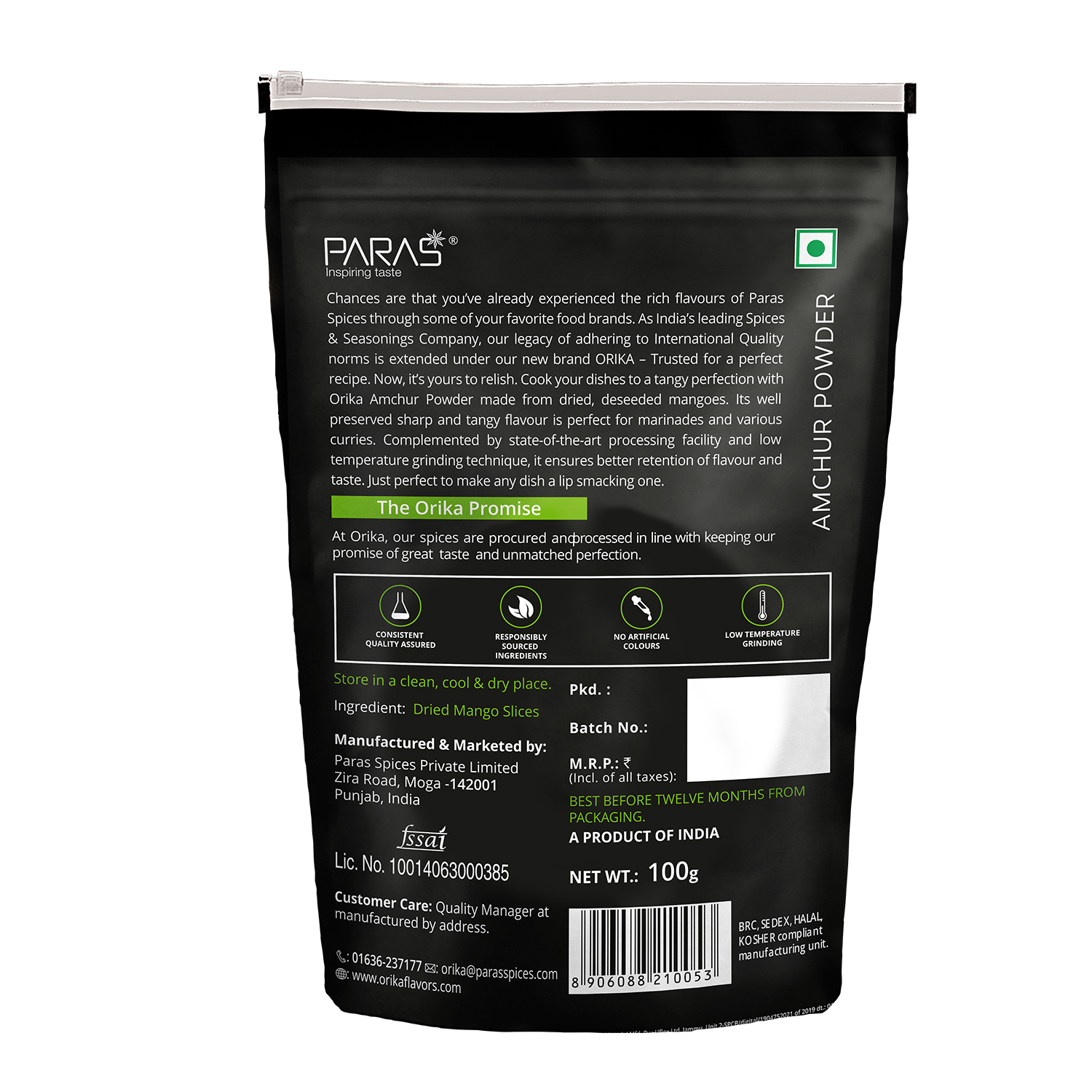 Orika’s Amchur is made of premium quality wildly picked dried mangoes that are sourced from Chhindwara district of Madhya Pradesh which is known for best quality dried mangoes. The tangy flavour adds a punch to any dish and enhances its taste. The more the acidity, the tangier the dried mangoes.