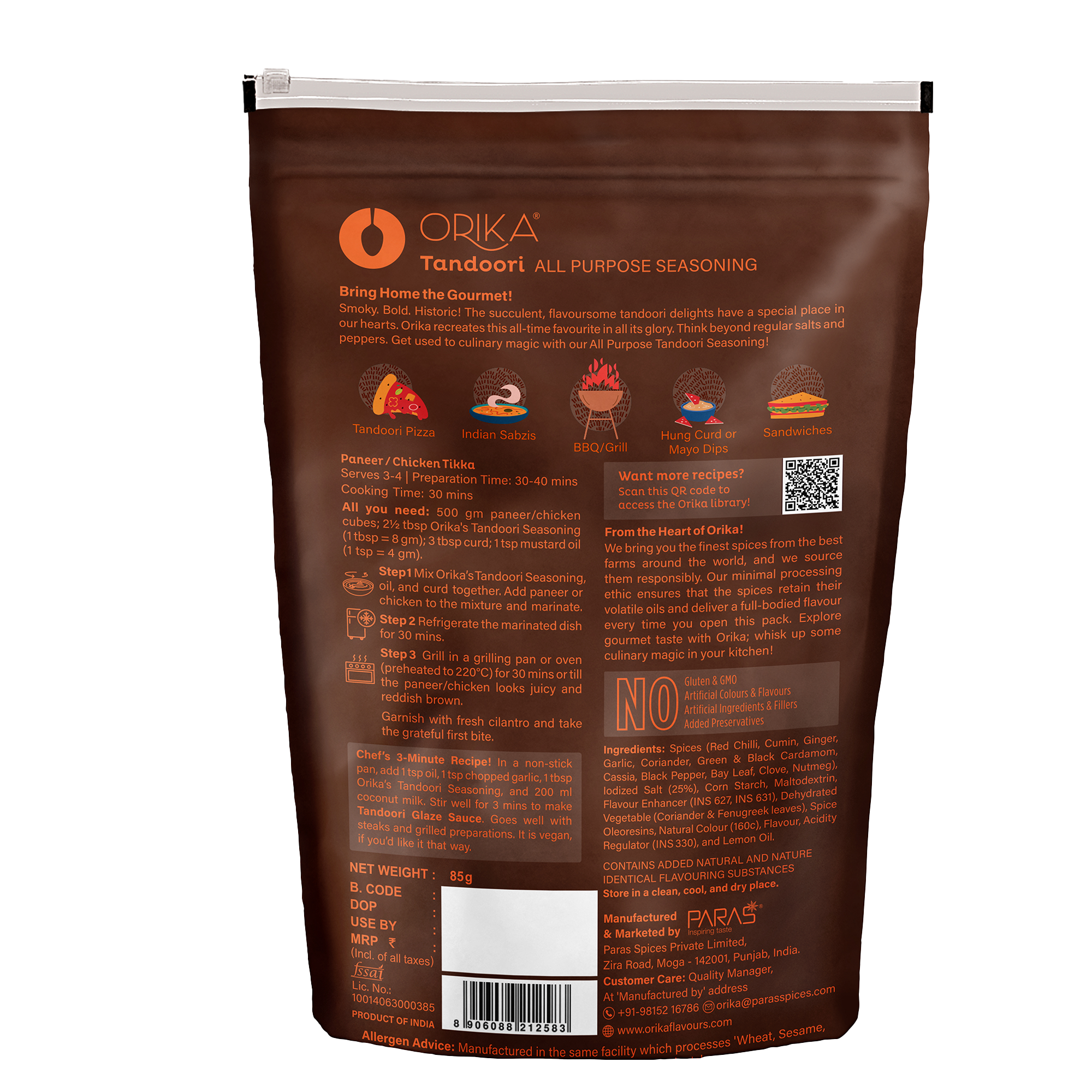 An ode to the sizzling tandoori cuisines of North India, Orika’s Tandoori Marinade packs in the spicy red & green chili, comforting coriander and our signature garam masala. Kebabs or flatbreads, a rub of Tandoori Marinade infuses rich aroma in everything that goes into the Tandoor. Most importantly, it saves you the hassle of trying to get that elusive marinating mixture signature of only professional kitchens.
