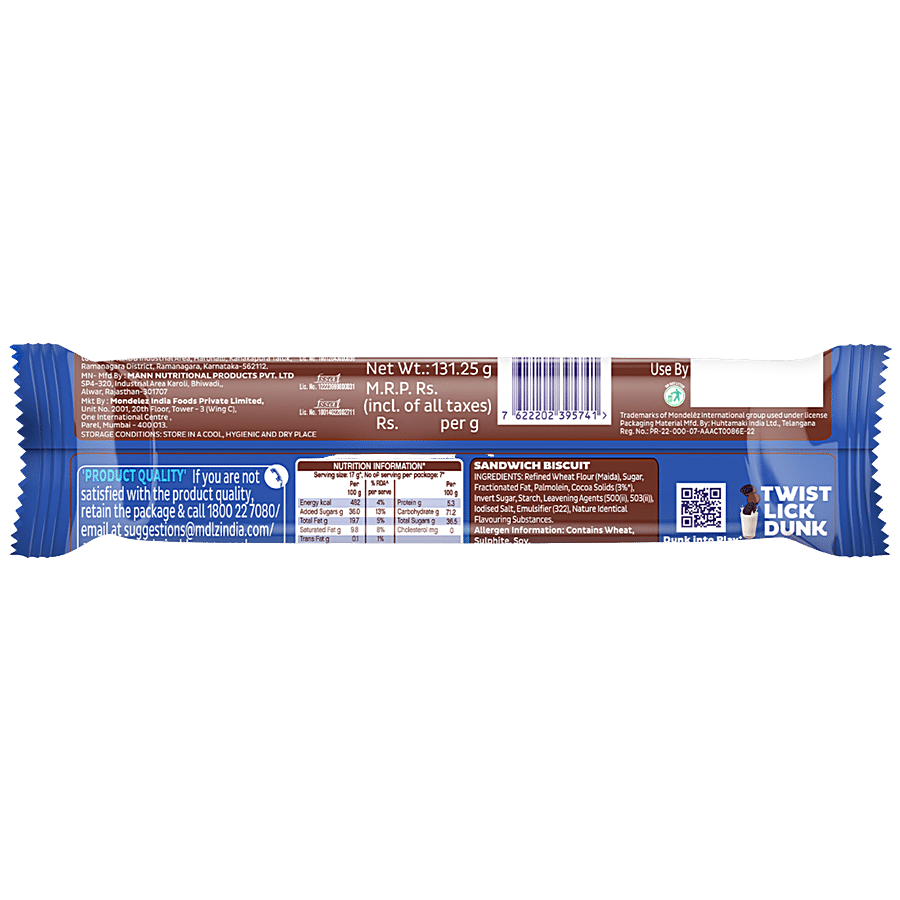 Cadbury Oreo Choco Creme Sandwich Biscuit, 131.25 g