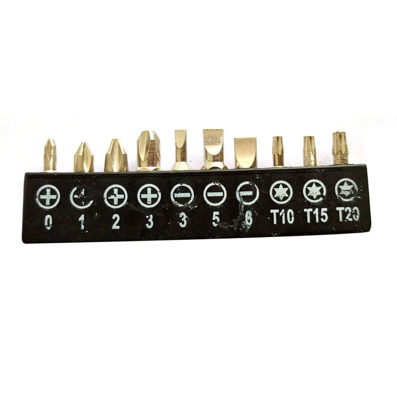 Product Description 10-in-1 Multibit Screwdriver 10-in-1 Multibit Screwdriver Set is a versatile tool designed for mobile, laptop, and electronic repairs. With fully magnetic tips, it allows for easy and secure handling of small screws, making repairs quicker and more precise. The set includes a variety of bit sizes, perfect for tackling various tasks. Compact and portable, this tool is an essential addition to any repair kit. Whether you're working on smartphones, laptops, or other small electronics, this set ensures efficiency and convenience. Key Features: 10 Different Bits – Includes a variety of bits like Phillips, Flathead, and Torx, perfect for diverse repair needs. Magnetic Handle – Keeps screws in place for easy handling and prevents them from falling. Ergonomic Design – Comfortable grip, reducing hand fatigue for prolonged use. Durable Construction – High-quality metal bits and strong handle ensure long-lasting durability. Portable Storage Case – Compact and organized case to easily store and carry the tool set. Versatile Use – Ideal for working on mobile phones, laptops, tablets, cameras, and other small electronics. Applications/Uses: Mobile and Laptop Repairs – Perfect for fixing smartphones, laptops, and tablets, especially when working with small screws. Electronics and Gadget Fixes – Use for repairing cameras, game consoles, and other small electronics requiring precision work. DIY Projects – Ideal for hobbyists and tech enthusiasts performing electronics assembly or customization. Computer Assembly – Works great for assembling or disassembling computer parts, including motherboards and hard drives. Precision Work – Ideal for handling delicate components with precision, such as opening smart devices or wearables.