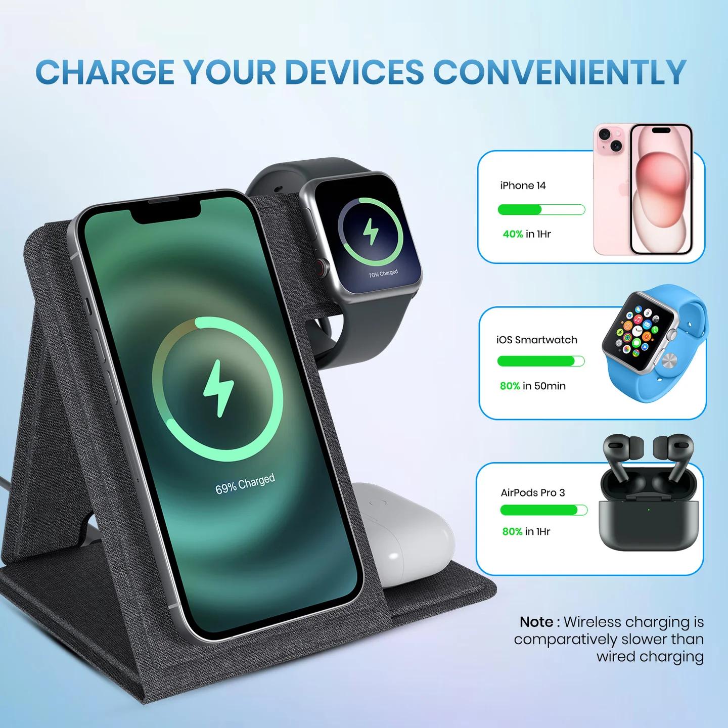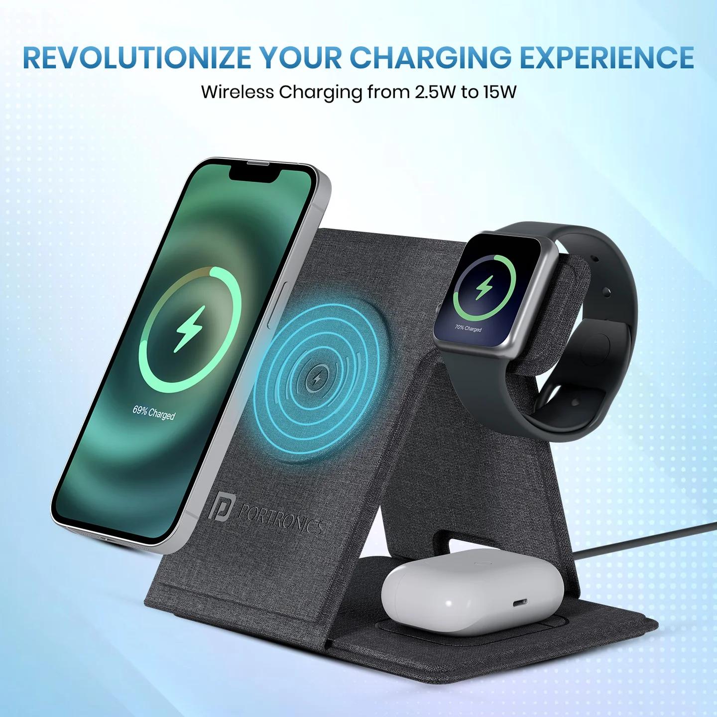 Portronics Freedom Fold 3 15W Foldable MagSafe Wireless Charger for iPhone, Apple Watch & AirPods