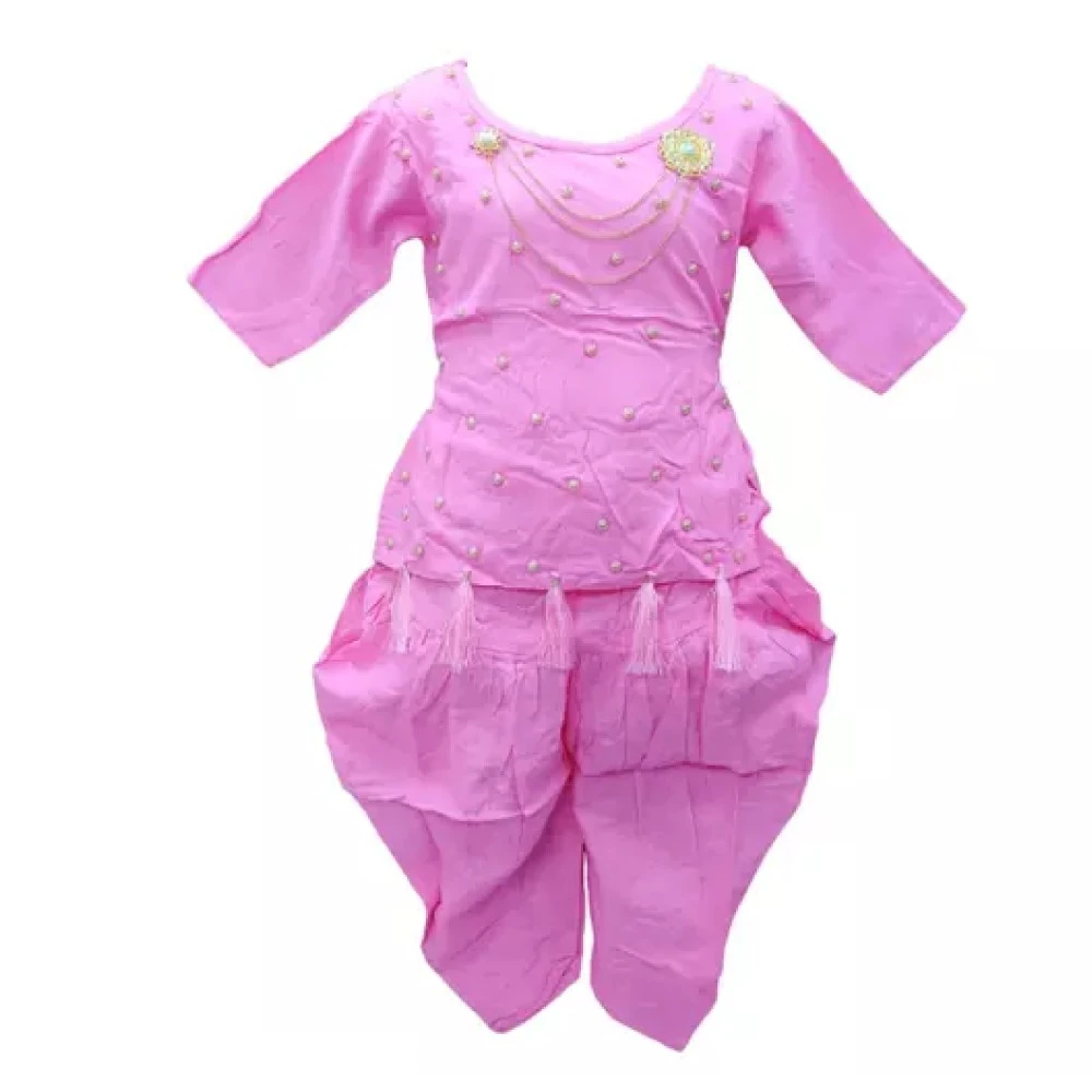 Prince Hosiery Rayon Moti Work Top and Dhoti Set Pink