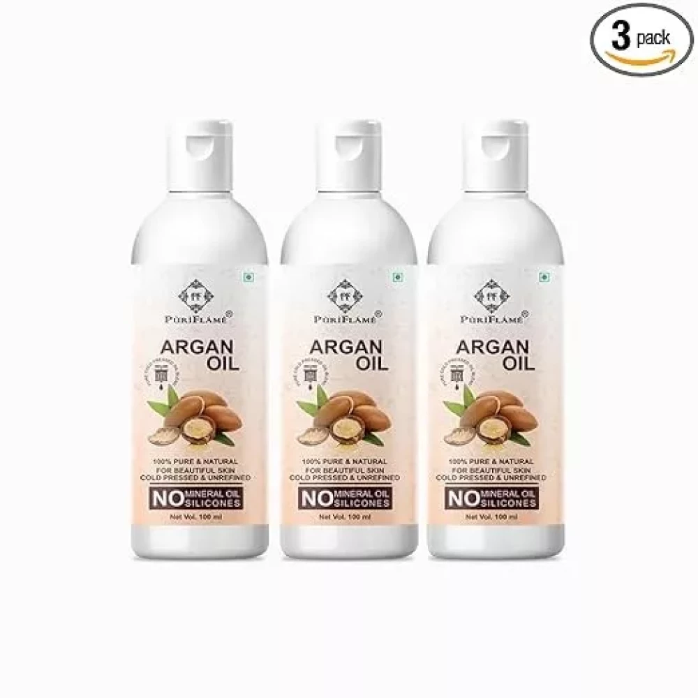 PuriFlame 100% Pure Unrefined Argan Oil For Hair Conditioning and Softer Hair Each 100ML