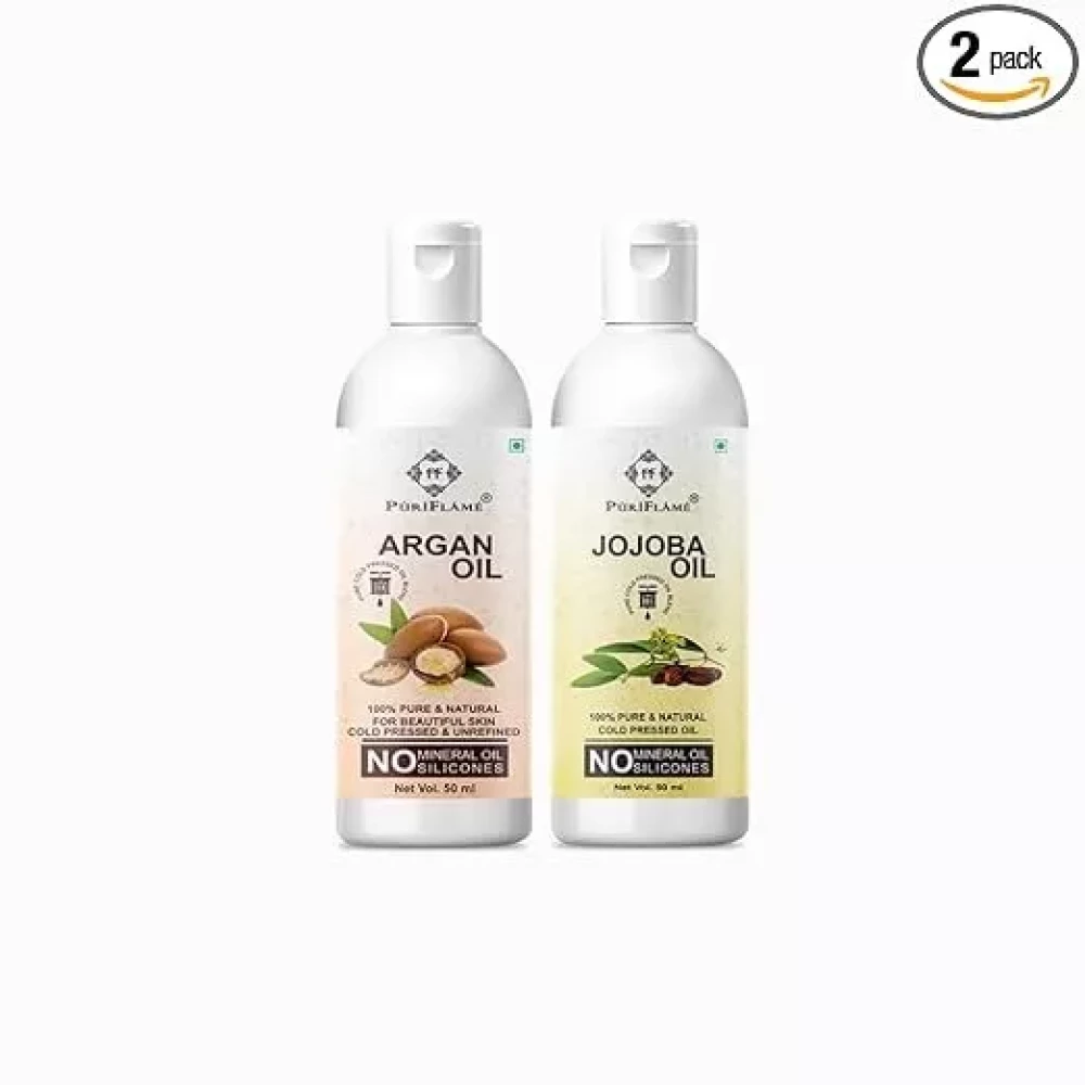 PuriFlame 100% Pure Argan Oil 50ML and Jojoba Oil 50ML Combo For Rapid Hair Growth