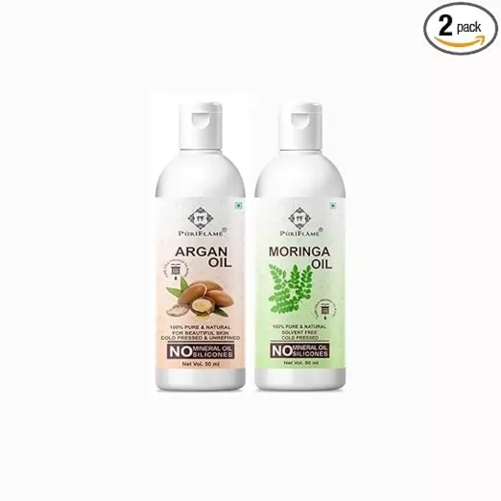 PuriFlame 100% Pure Argan Oil 50ML and Moringa Oil 50ML Combo For Rapid Hair Growth