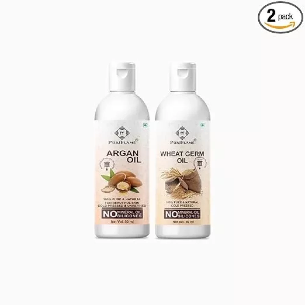 PuriFlame 100% Pure Argan Oil 50ML and Wheat Germ Oil 50ML Combo For Rapid Hair Growth