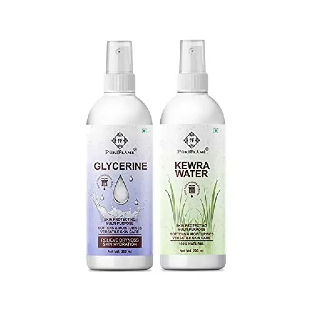 PuriFlame 100% Pure Glycerine Increase Skin Hydration 200ML and Kewra Water Cleanses The Pores 200ML