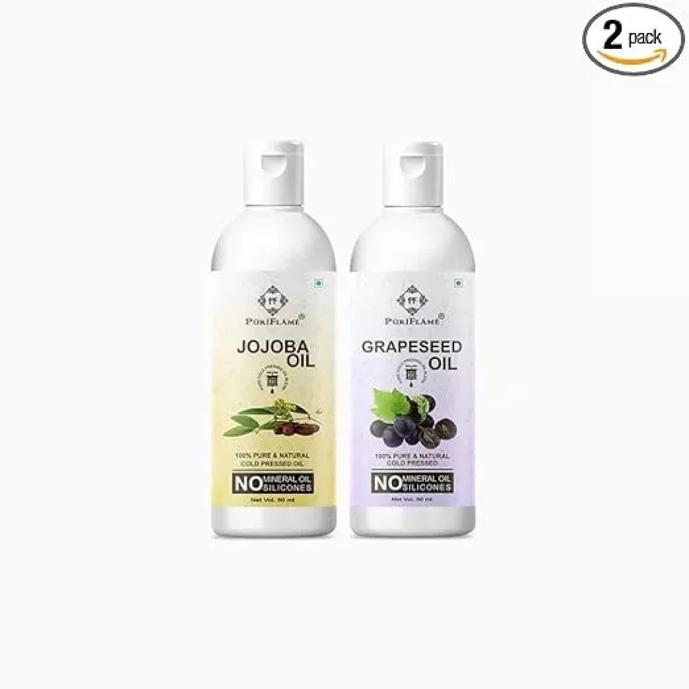 PuriFlame 100% Pure Jojoba Oil 50ML and Grapeseed Oil 50ML Combo For Rapid Hair Growth