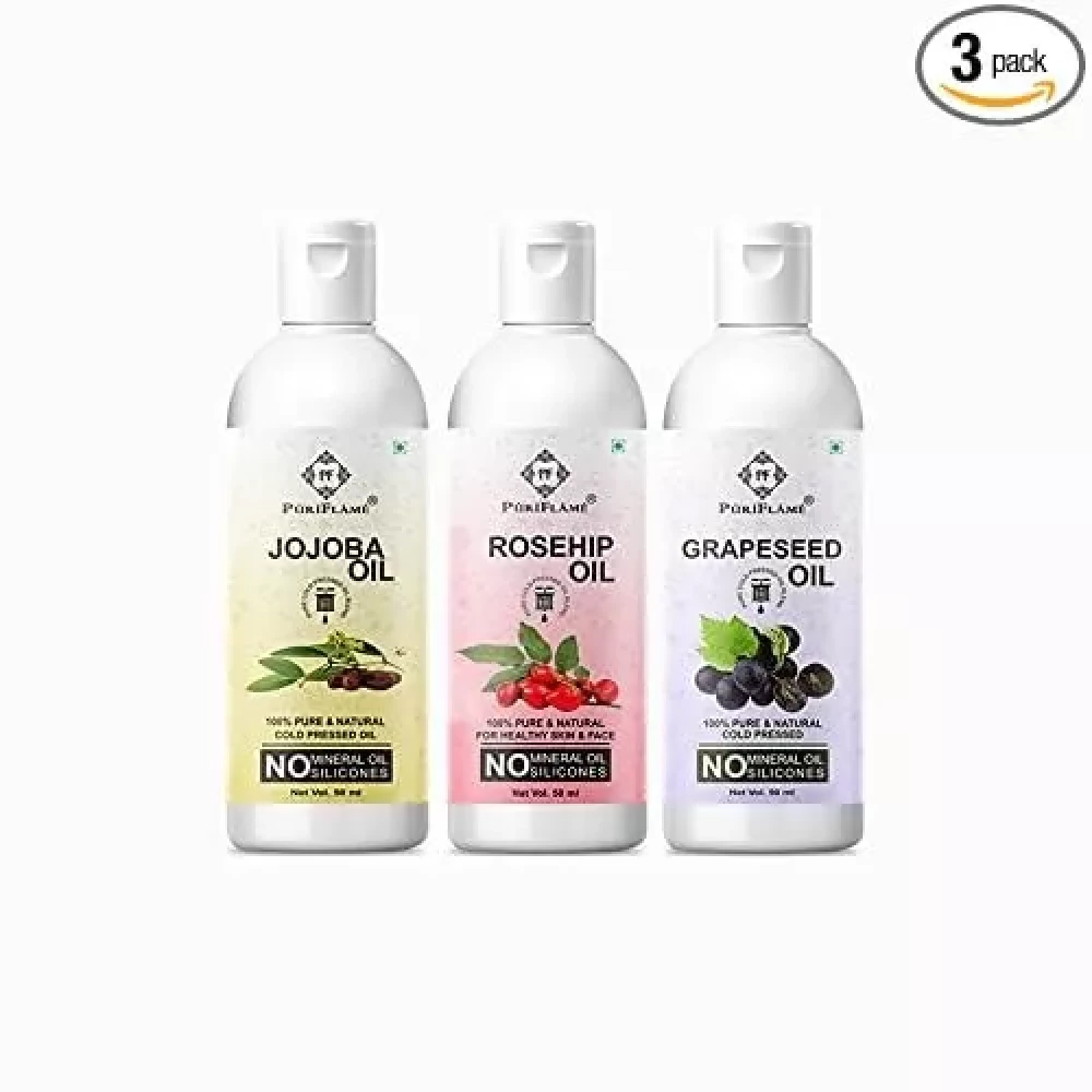 PuriFlame 100% Pure Jojoba Oil 50ML and Rosehip Oil 50ML and Grapeseed Oil 50ML Combo