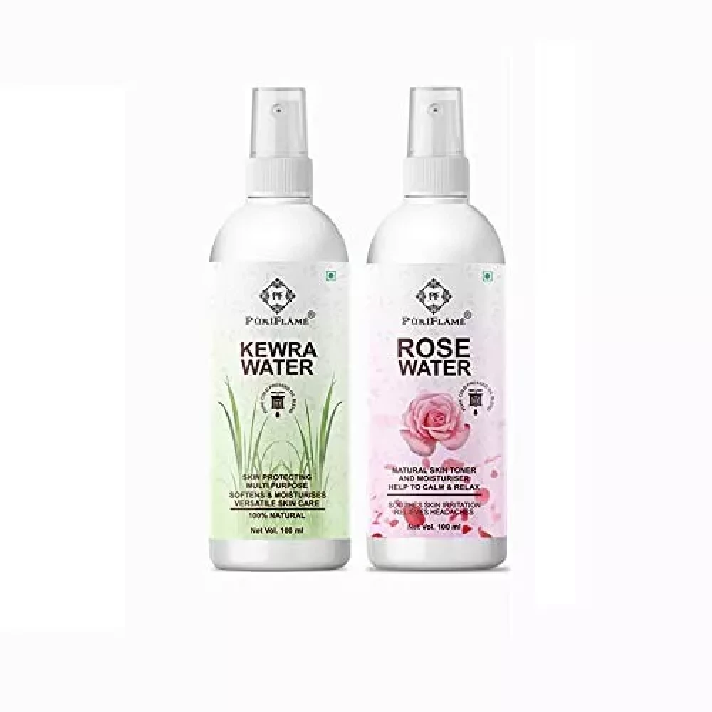 PuriFlame 100% Pure Kewra Water Cleanses The Pores 100ML and Rose Water Prevents Blackheads 100ML