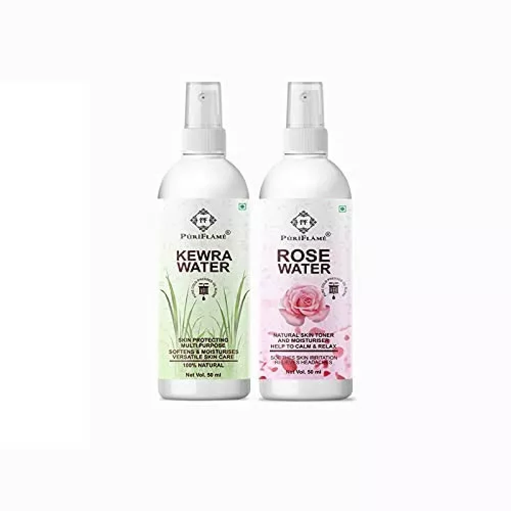 PuriFlame 100% Pure Kewra Water Cleanses The Pores and Rose Water 50ML