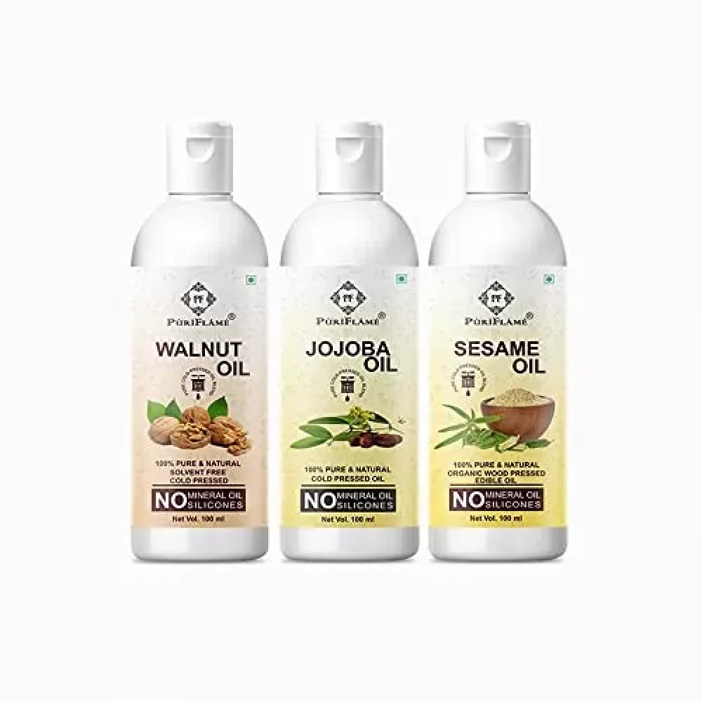 PuriFlame 100% Pure Walnut Oil 100ML and Jojoba Oil 100ML and Sesame Oil 100ML Combo For Hair