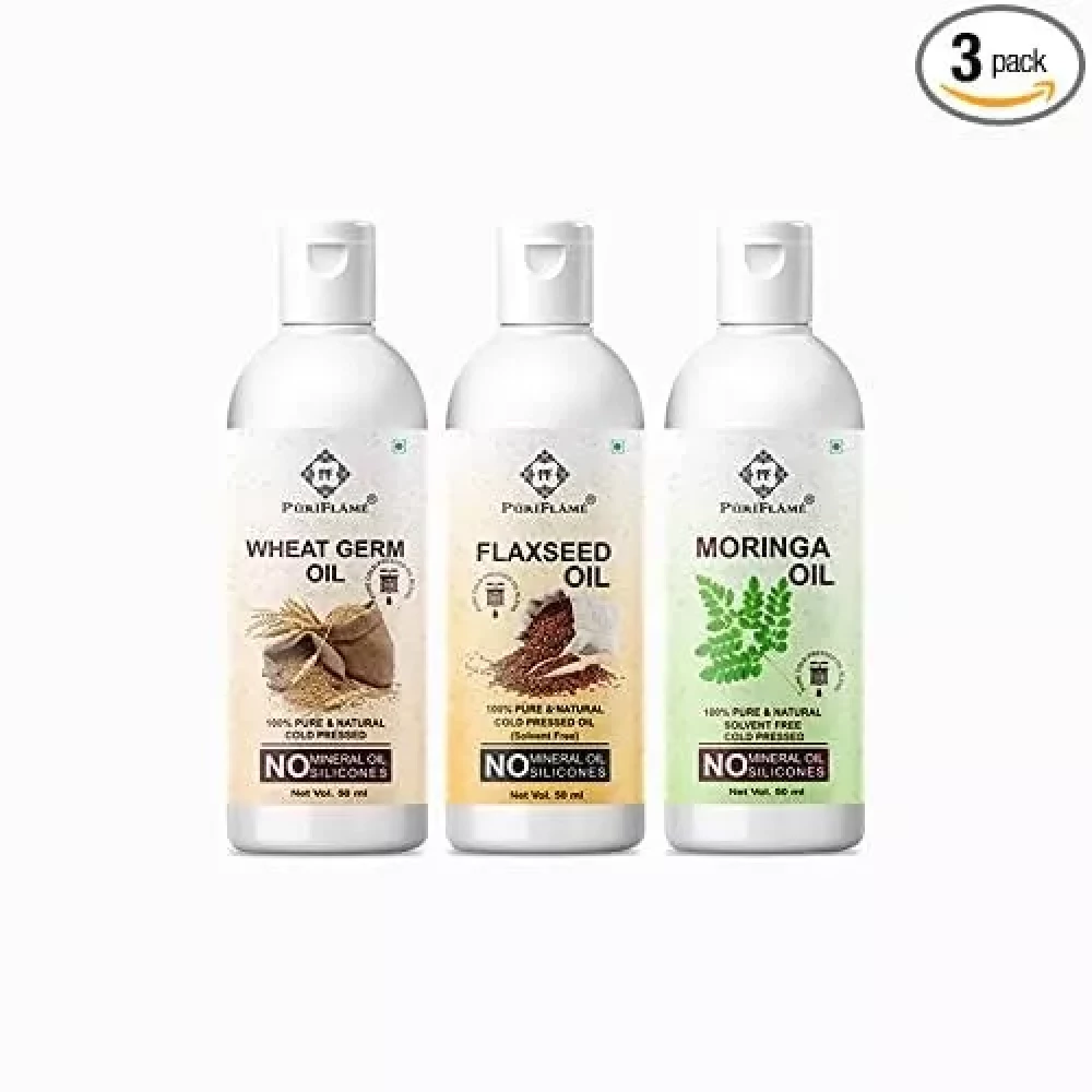PuriFlame 100% Pure Wheat Germ Oil 50ML and Flaxseed Oil 50ML and Moringa Oil 50ML Combo
