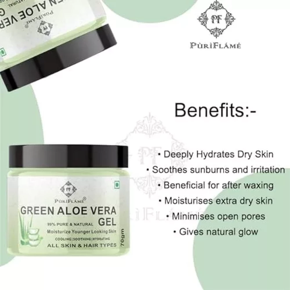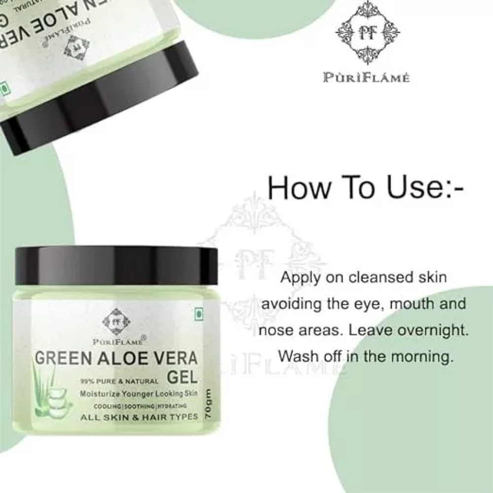 PuriFlame 99% Pure Green Aloe Vera Gel for Face 70GM Pack Of 4