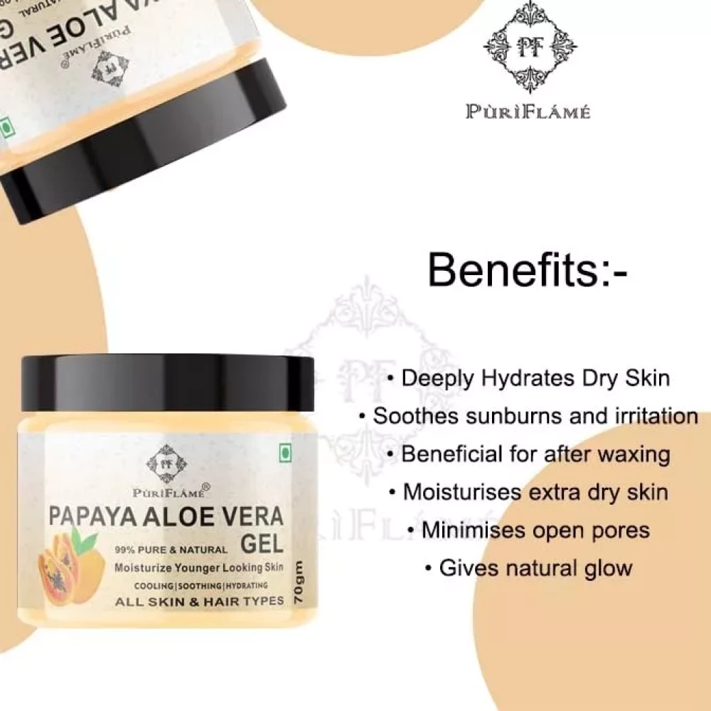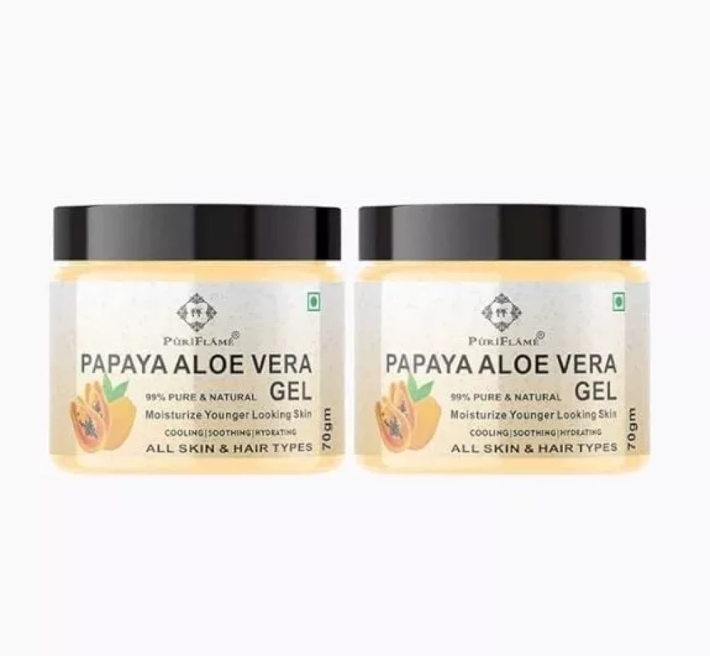 PuriFlame 99% Pure Papaya Aloe Vera Gel for Face Skin and Hair 70GM Pack Of 4