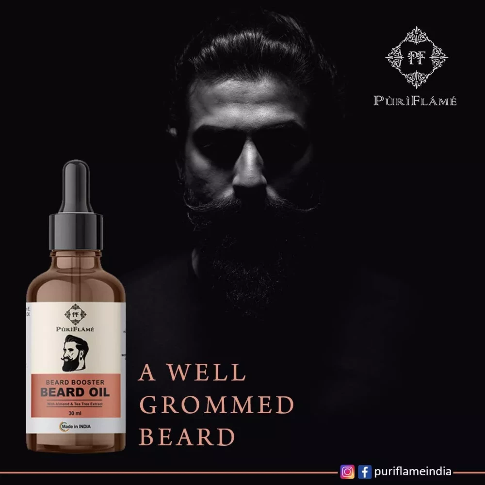 PuriFlame specially formulated Beard Oil for Beard Growth. Our Beard Growth oil contains Redensyl, 8 natural oils and Vitamin- E for hair growth, nourishment and strength Redensyl - works on both hair roots and shaft, to re-balance hair's natural cycle for hair growth 8 Natural Oils - Argan Oil, Almond Oil, Avocado Oil, Castor Oil, Acai Berry Oil, Olive Oil, Gooseberry Oil, Watermelon Seed Oil - strengthen and nourish hair, repair damaged hair and reduce breakage Vitamin E - strengthens hair follicles Our Beard Growth Oil is Sulphate and Paraben free