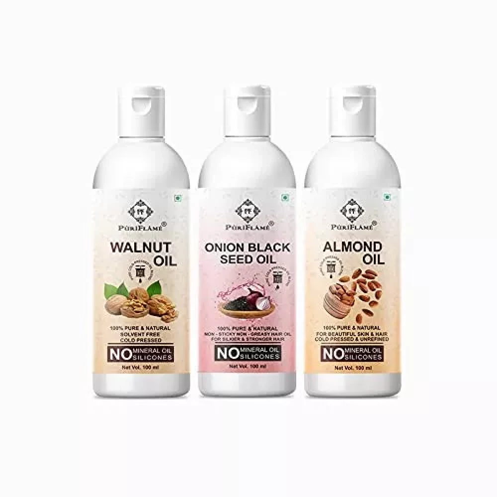 PuriFlame Pure Walnut Oil 100ML and Onionblackseed Oil 100ML and Almond Oil 100ML Combo For Hair