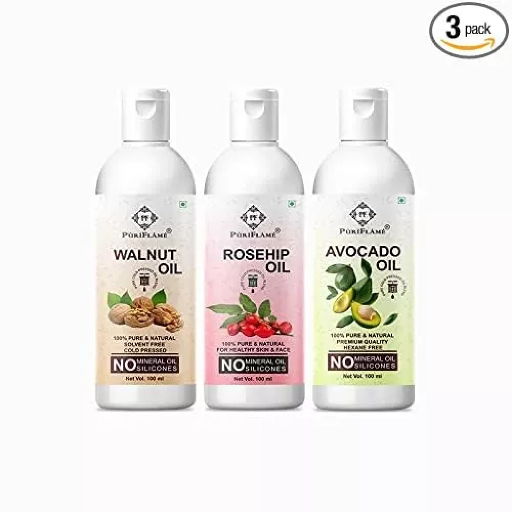 PuriFlame Pure Walnut Oil 100ML and Rosehip Oil 100ML and Avocado Oil 100ML Combo