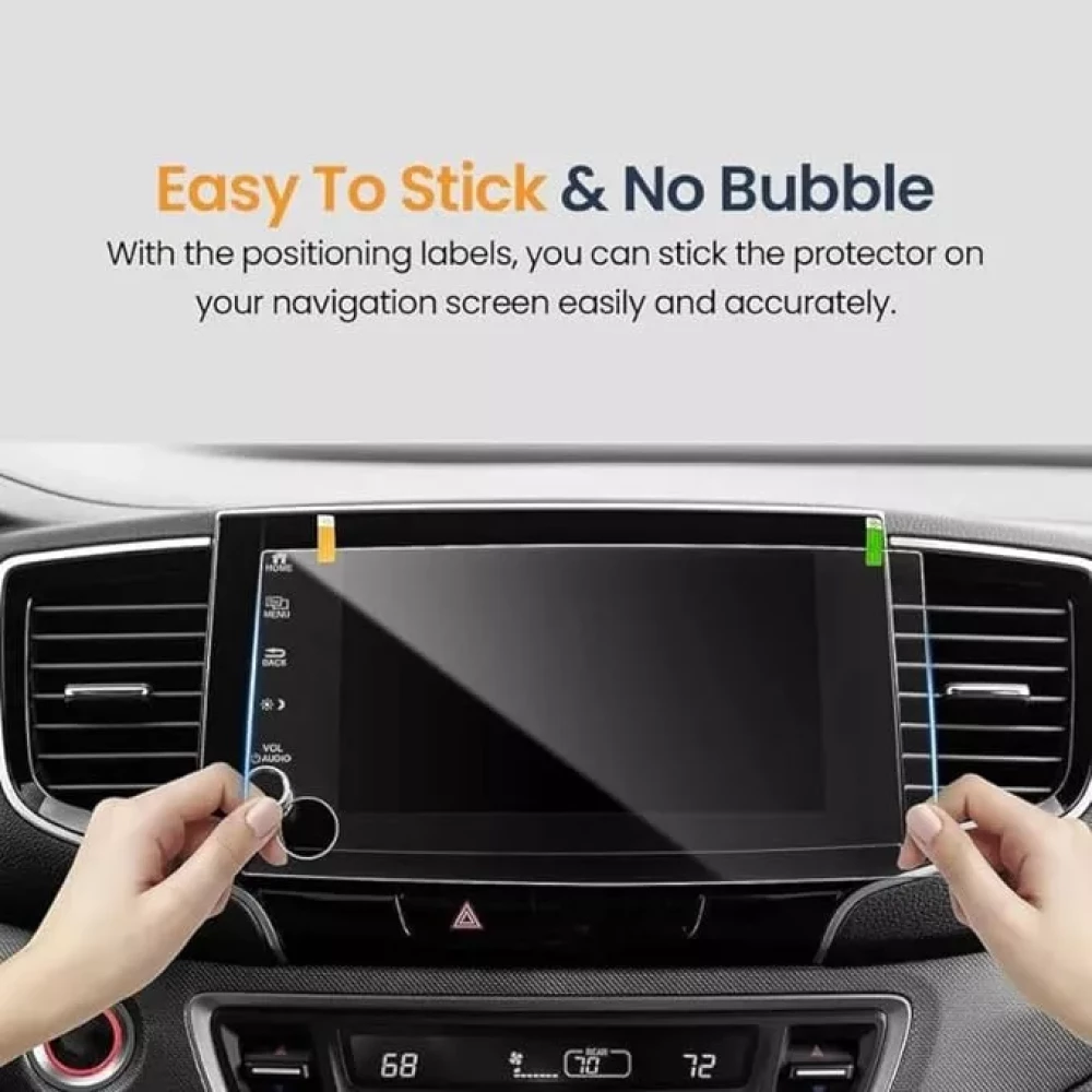 ULTIMATE PROTECTION AND USABILITY: Our Premium Screen Protectors are designed to protect your device screen against impact, scratches, dust and fingerprint smudges. Manufactured from a high quality chemically treated guards, the screen protectors are lightweight, thin but most importantly, extremely protective. After lot of experiment Team have finally developed a technique where major problems like Rainbow Effect, Dust Particles entering from sides, Weak Adhesion, Less responsiveness have been removed completely. HARDNESS: Industry-high hardness: Effectively resists scratches up to 9H (harder than a knife). OLEOPHOBIC COATING: The Oleophobic coating built into these screen protectors is a special oil-repellant coating which prevents oily fingermarks from sticking to the screen, so that they can be easily wiped off without leaving hard to remove dried on smudges. EASY INSTALLATION: Due to their solid nature, tempered glass screen protectors are much easier to fit and less error prone than standard screen protectors. Also, we have included range of accessories which smoothens the installation process 9H hardness glass maximum protection from high-impact screen protector are premium protection for the delicate screen on your car infotainment systems, The display protector is made of shatter-proof glass, comes with a smudge-proof coating, and application is a snap. Screen guards, processed shield provides extensive protection from outside damages and scratches, including sharp objects like knives and keys and its laser-cut for a perfect fit.