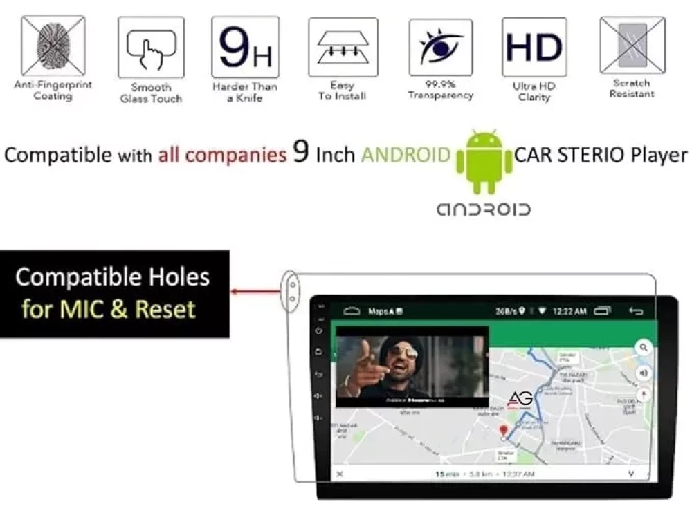 Al Qahhar 9H Unbreakable Screen Protector For Touch Screen Infotainment System Compatible With Universal 9Inch Screen