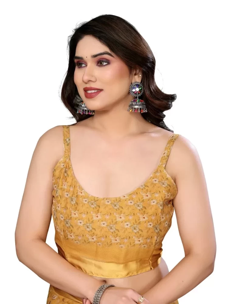 Step into sophistication with the BRIGHT MOSS SATIN PATTA Yellow Saree For Women. This exquisite saree is crafted from luxurious satin, offering a smooth and lustrous finish that drapes beautifully. The deep yellow color provides a timeless elegance, perfect for any formal occasion or festive event. The saree features a satin patta, adding a subtle yet chic detail that enhances its overall appeal. Ideal for women who appreciate classic style with a modern twist, this saree ensures you make a stunning statement wherever you go.