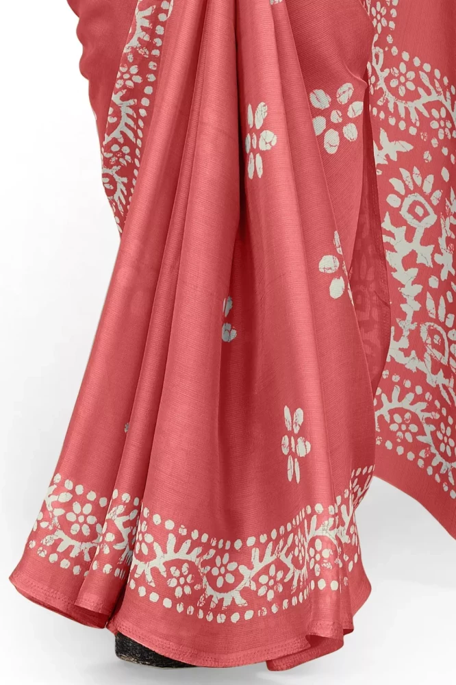 Featuring a beautiful batik printed design, this saree showcases intricate patterns and motifs in contrasting colors, adding a vibrant and artistic flair to your ensemble. The batik printing technique lends a unique and handcrafted touch to the saree, making it a standout piece in your collection.