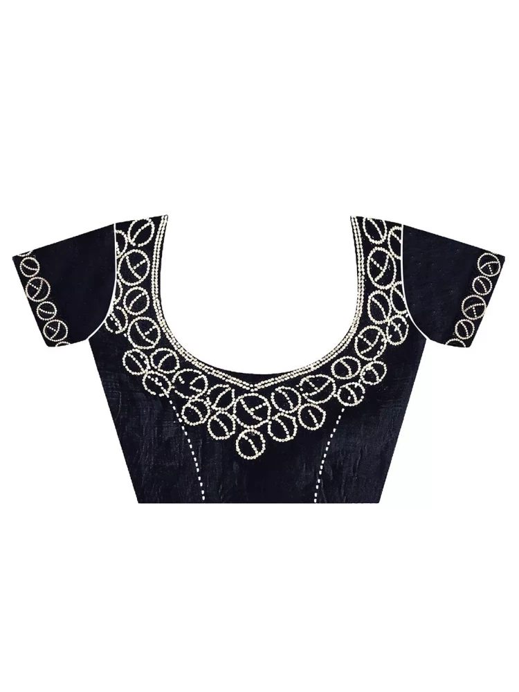 Step into the spotlight and exude unparalleled elegance with our Embroidered Bollywood Satin Chiffon Black Saree with Stone Work. This exquisite saree is a testament to opulence and glamour, designed to make you feel like a Bollywood diva on any special occasion.