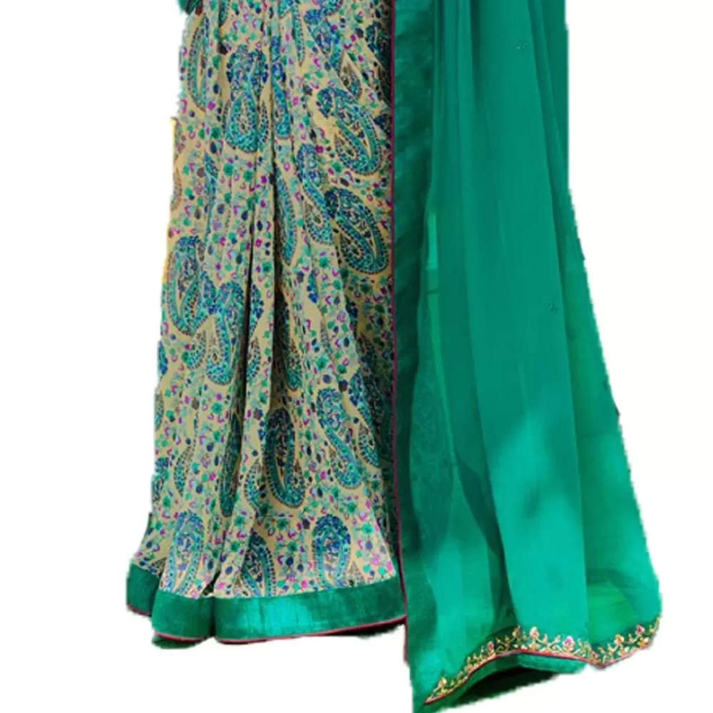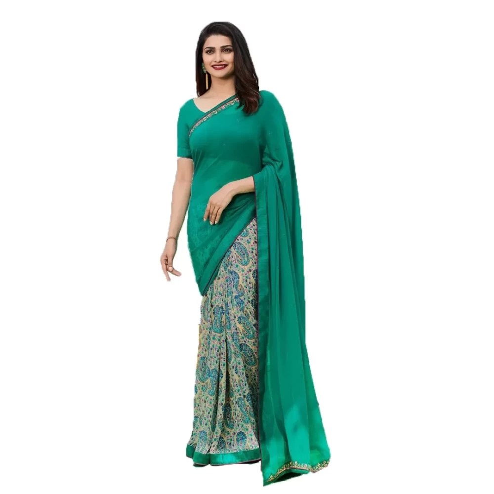 Floral Half Print Fashion Georgette Firozi Line Saree