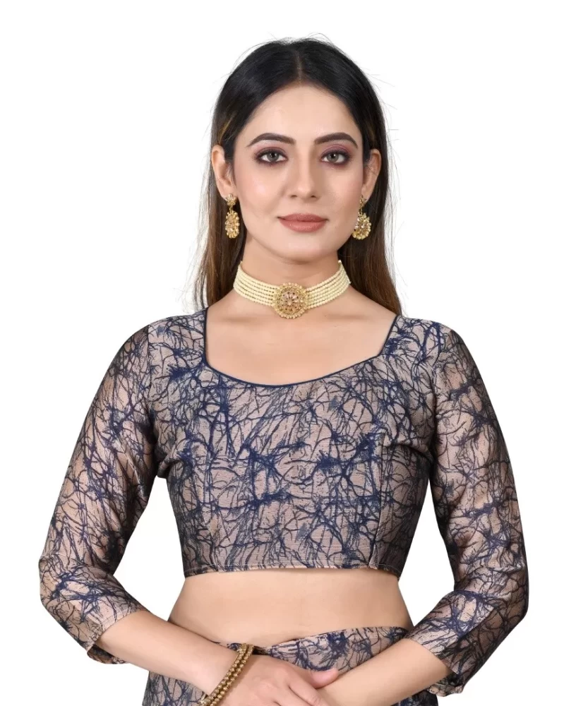 Styling Tips: Pair this saree with a contrasting blouse for a bold look, or opt for a matching navy blue blouse to keep it cohesive and elegant. Accessorize with gold or oxidized jewelry to enhance its traditional charm. A sleek hairstyle or loose waves will complement the saree's flowing fabric, completing your overall look.