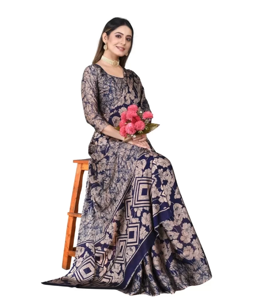 Tag: printed saree women wear ethnic wear women clothes clothing chiffon blue navy blue girls navy printed saree
