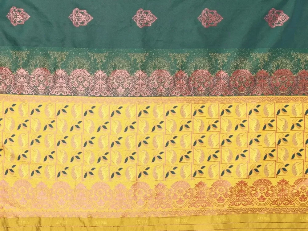 KAVERI Green Musterd Banarasi Silk Saree