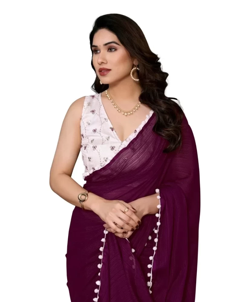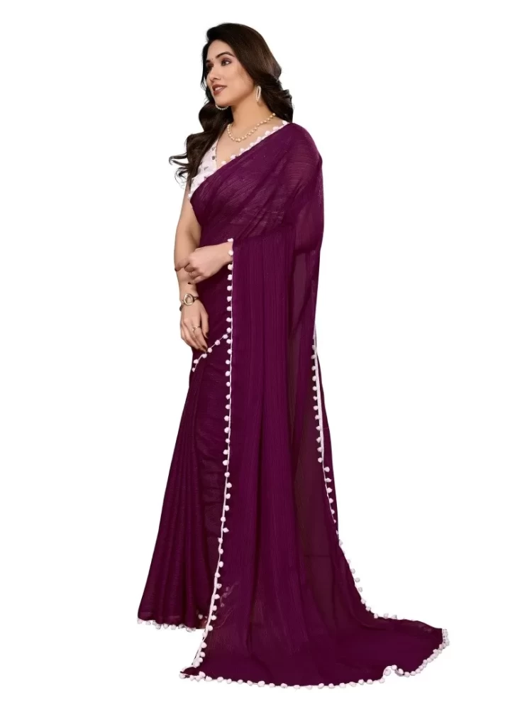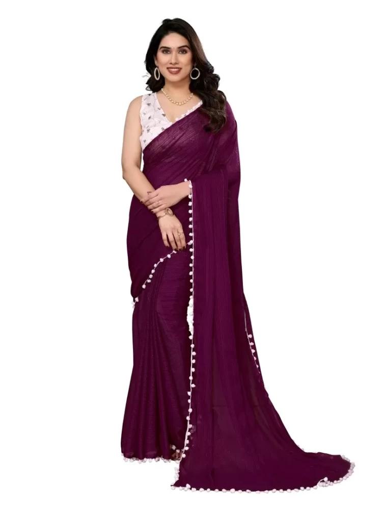 Tag: saree women wear ethnic wear women clothes clothing polyester purple girls plain
