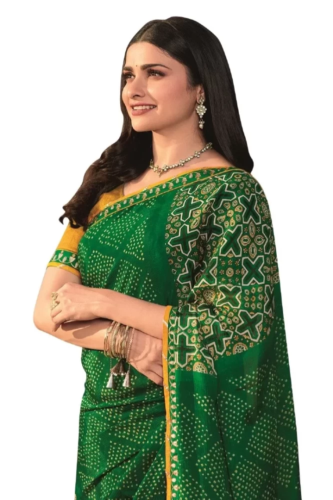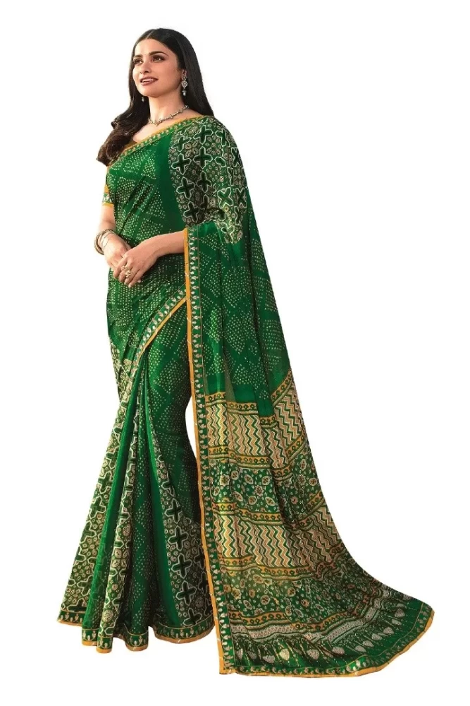 Tag: saree women wear ethnic wear women clothes clothing chiffon green girls bandhni saree