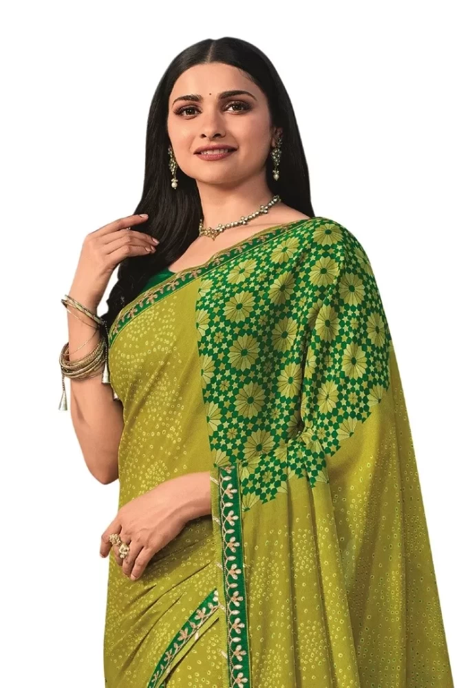Tag: saree women wear ethnic wear women clothes clothing olive chiffon girls bandhni saree