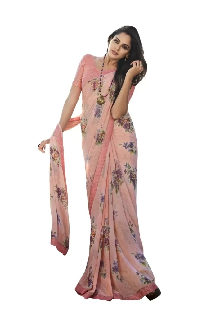 Embrace timeless elegance with the Peach Flower Georgette Printed Saree. This exquisite saree is crafted from high-quality georgette fabric, known for its lightweight and flowing drape, ensuring you stay comfortable and stylish throughout the day.
