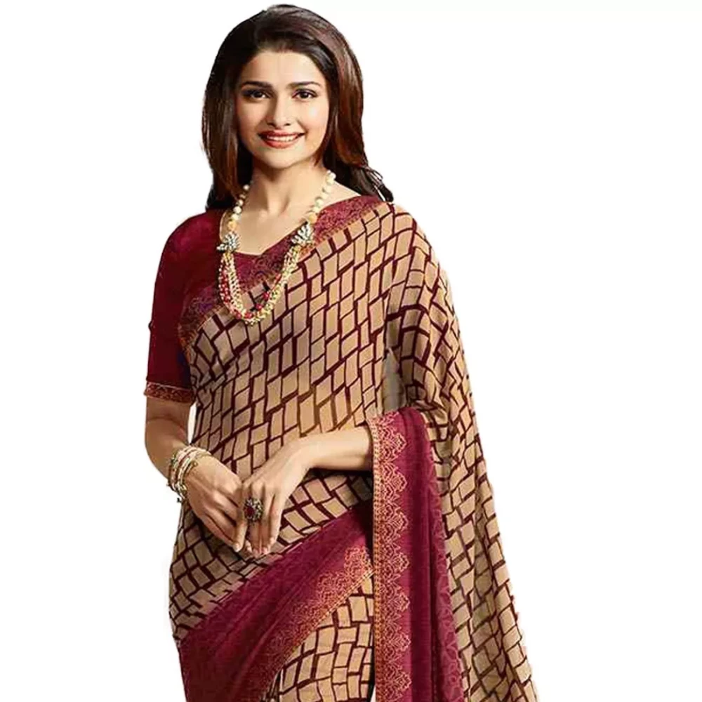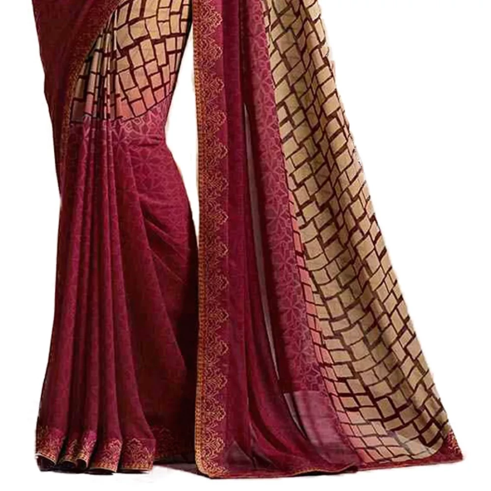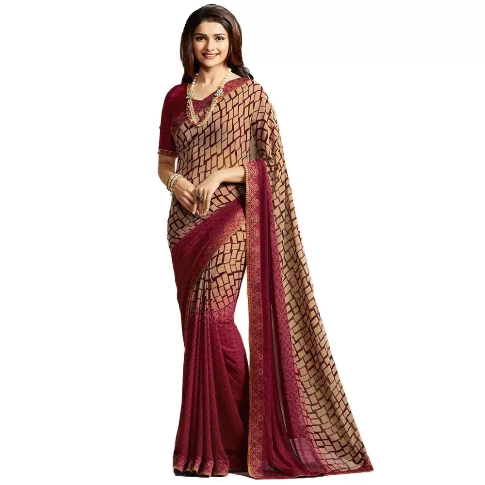 Step into the spotlight with our Printed Bollywood Georgette Maroon Saree, a captivating ensemble that exudes sophistication and glamour. Crafted from premium georgette fabric in a rich maroon hue, this saree is adorned with intricate prints that add an element of charm and elegance to your ethnic attire.