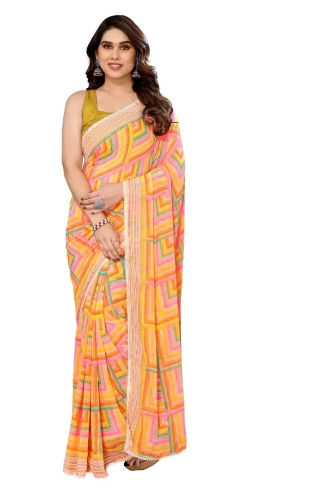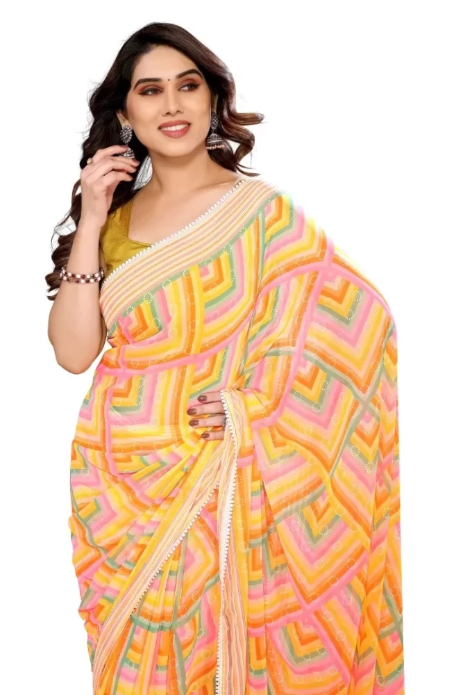 Tag: printed saree women wear ethnic wear women clothes clothing yellow girls printed saree