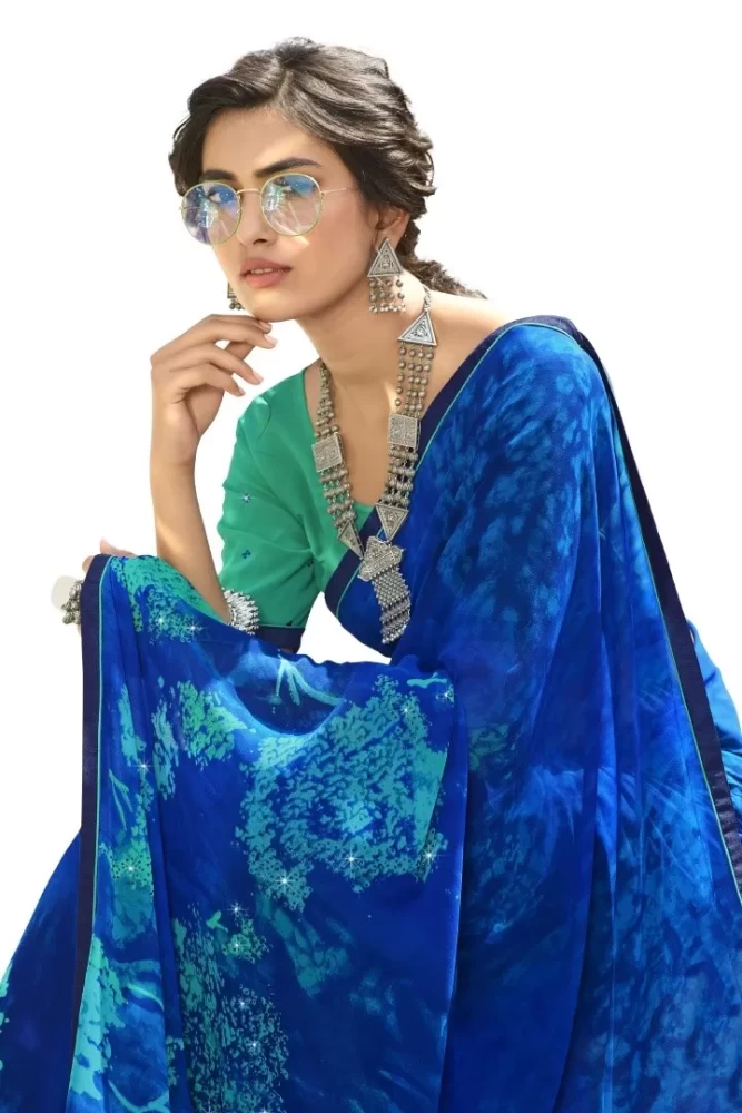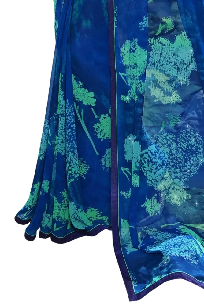 Tag: printed saree women wear ethnic wear women clothes clothing blue flower girls royal blue georgette banglori printed saree