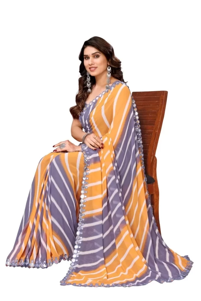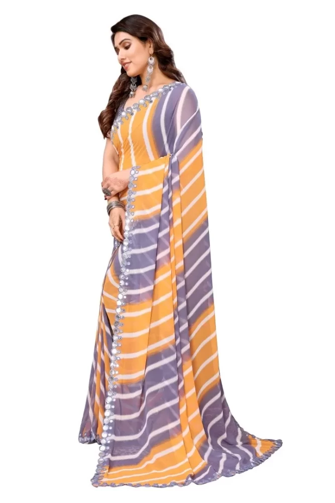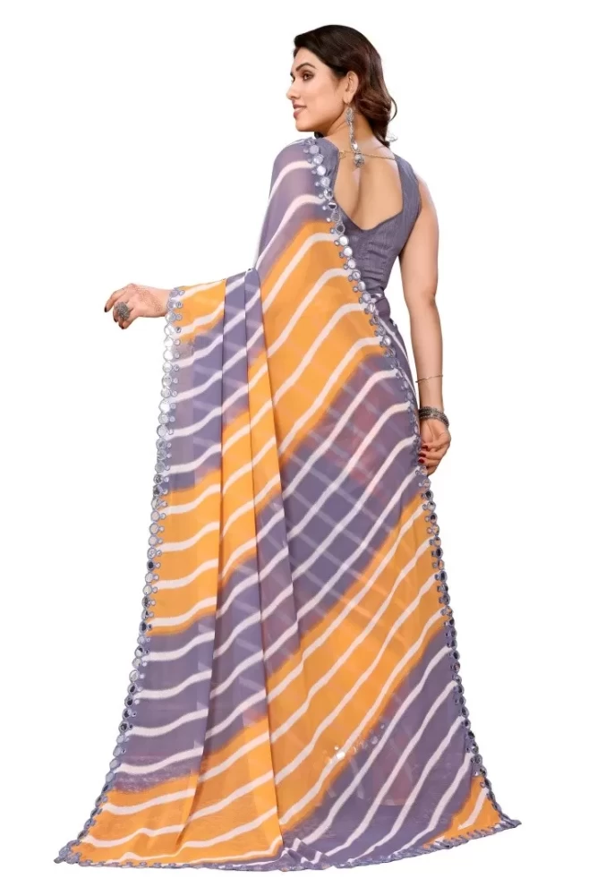 • Premium Georgette Fabric: The saree is crafted from high-quality georgette, known for its lightweight, sheer texture, and fluid drape, offering a comfortable and elegant wear.
