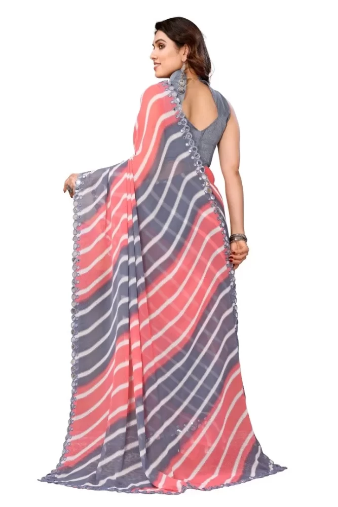• Premium Georgette Fabric: The saree is crafted from high-quality georgette, known for its lightweight, sheer texture, and fluid drape, offering a comfortable and elegant wear.