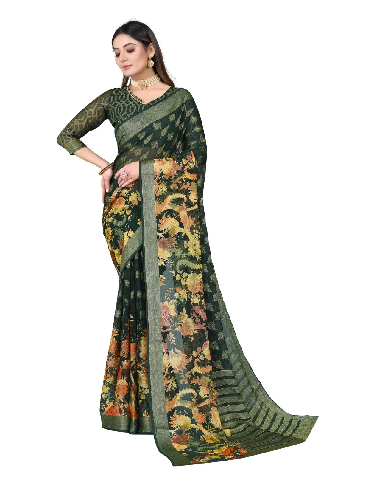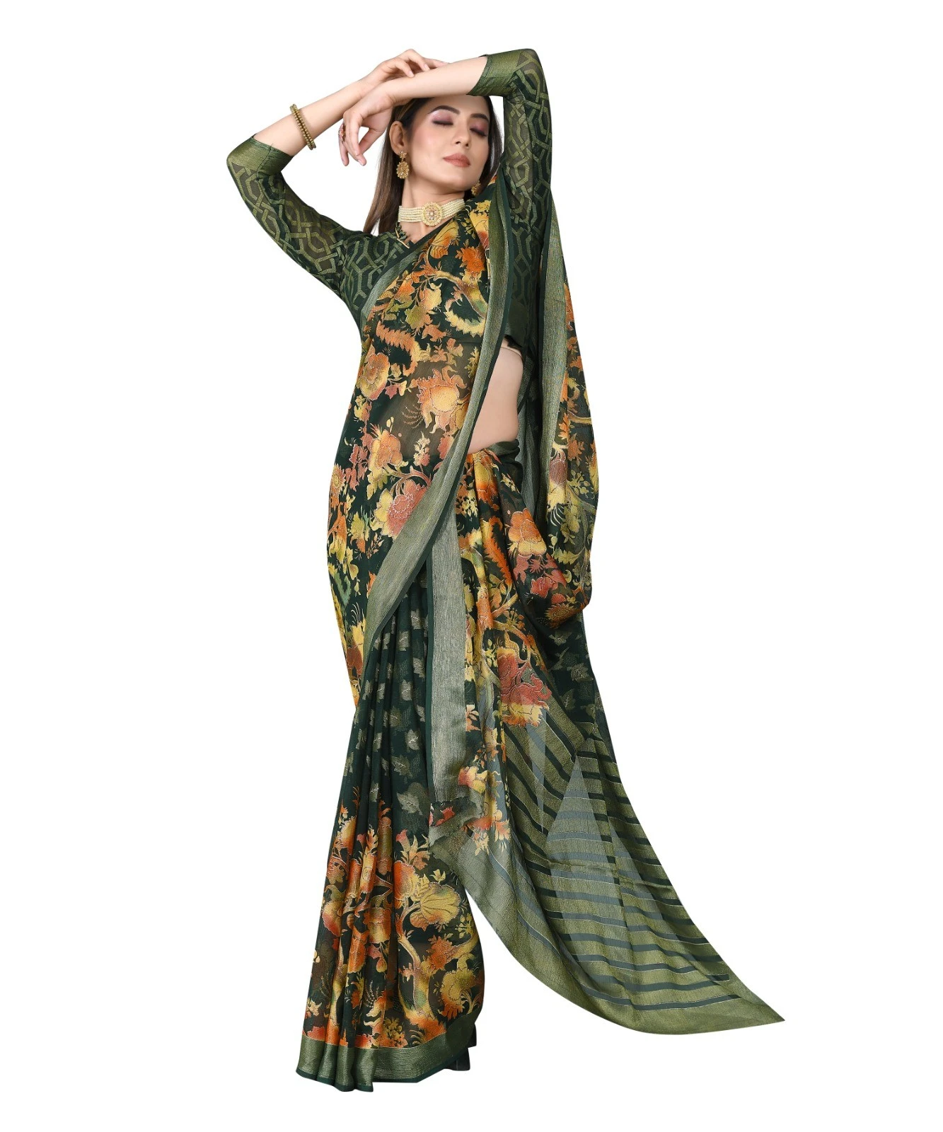 Elevate your style quotient with the Shiffon Braso Printed Green Saree, an exquisite blend of traditional craftsmanship and contemporary design. This saree encapsulates the essence of timeless elegance, making it a must-have addition to your ethnic wardrobe.