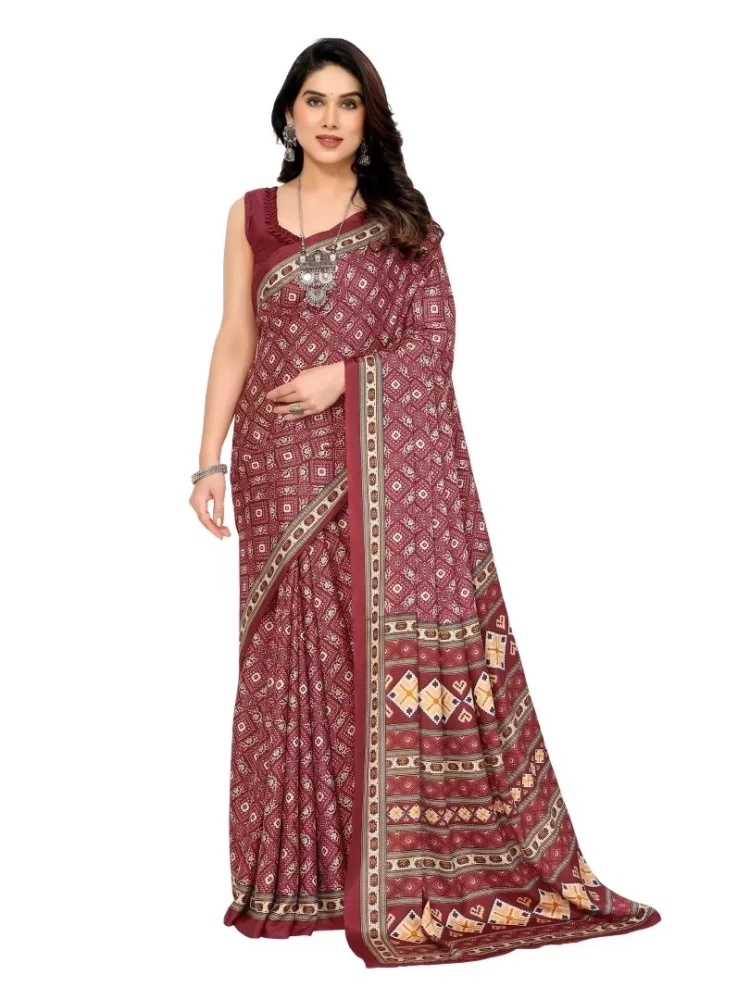 Tag: printed saree silk women wear ethnic wear women clothes clothing maroon girls printed saree