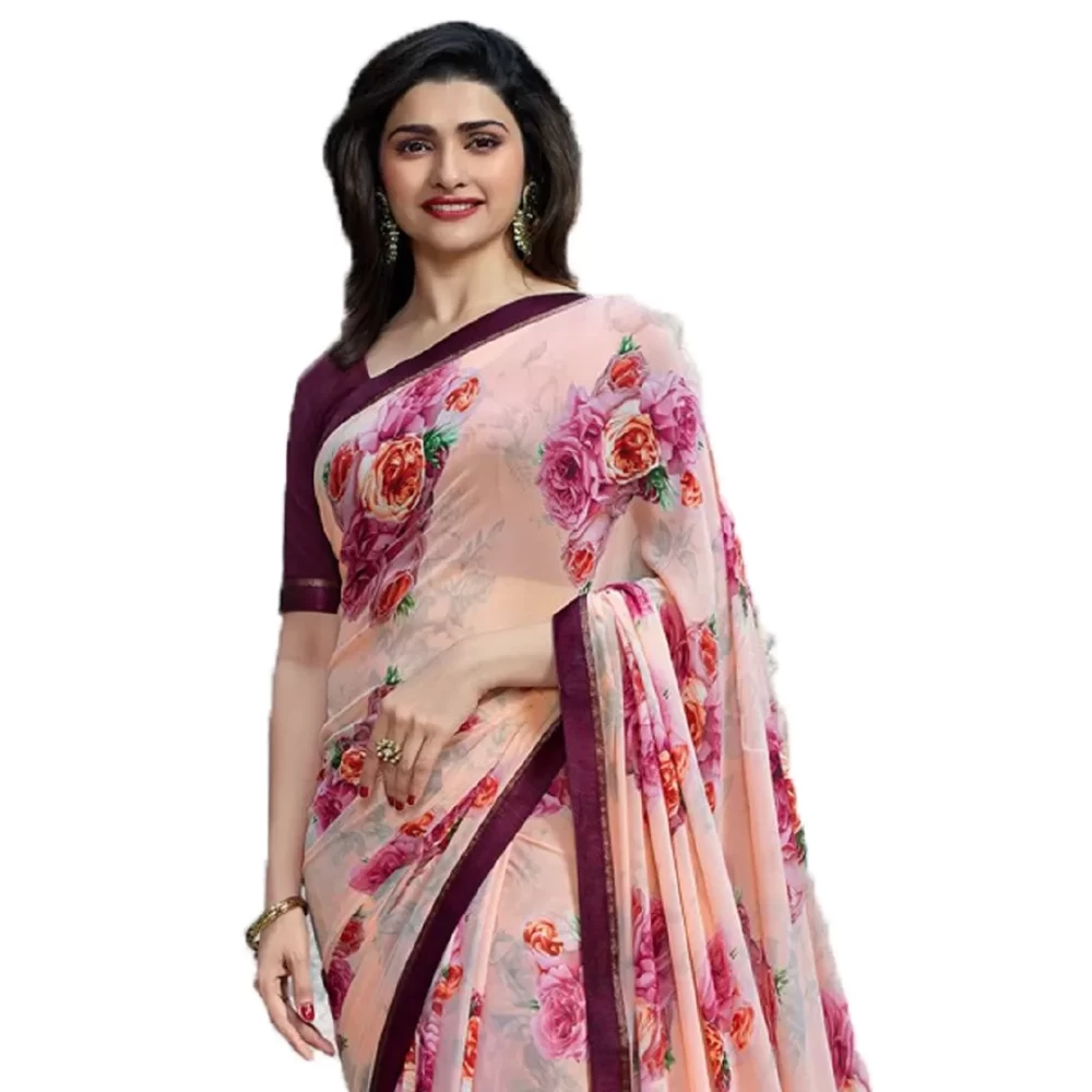 Embrace timeless elegance with the Star Walk Floral Printed Georgette Rose Saree for Women. This saree is crafted from premium georgette fabric, ensuring a lightweight and comfortable wear that flows gracefully. The beautiful floral print pattern adds a touch of nature-inspired charm, making it perfect for both casual and formal occasions.