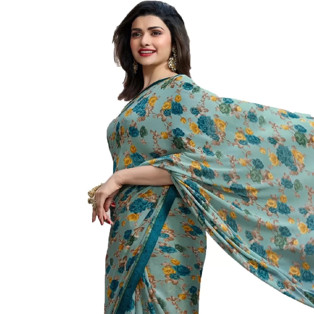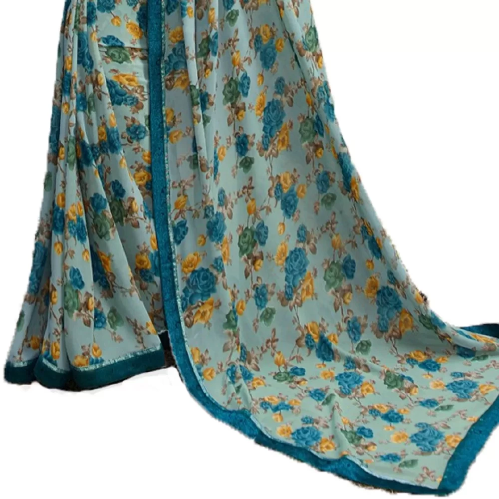 Star Walk Floral Printed Georgette Sky Blue Saree For Women
