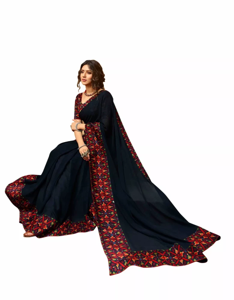 Women Beautiful Dark Blue Banglory print georgette printed saree