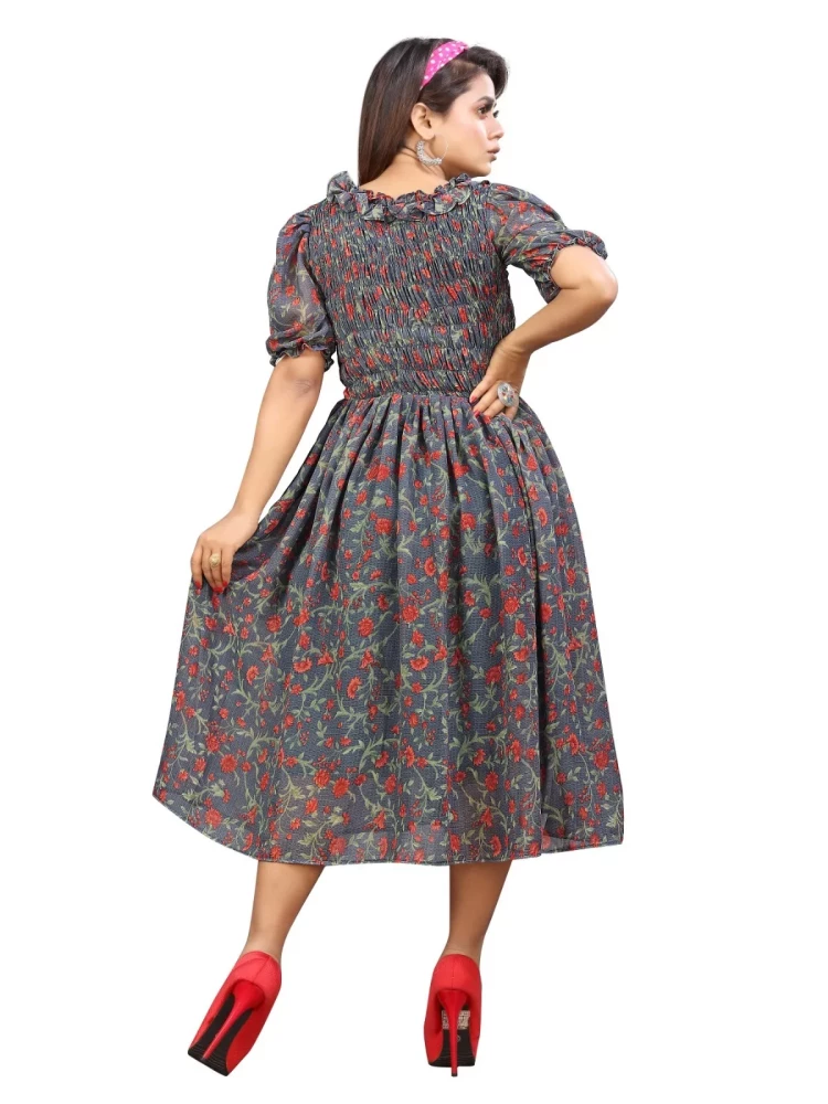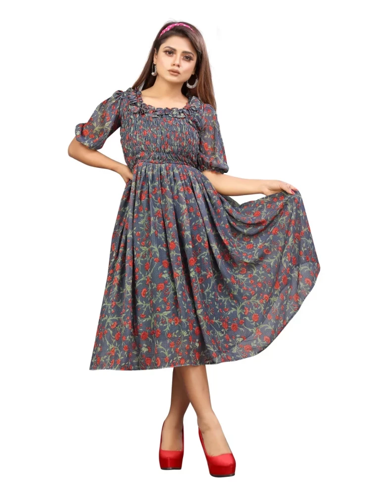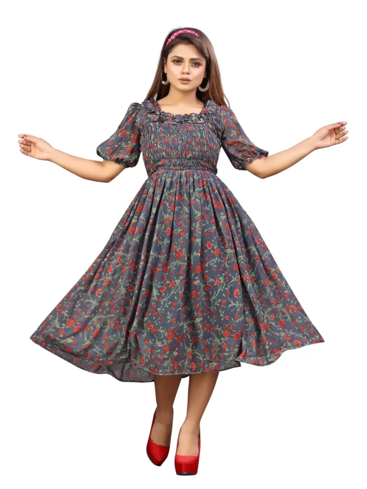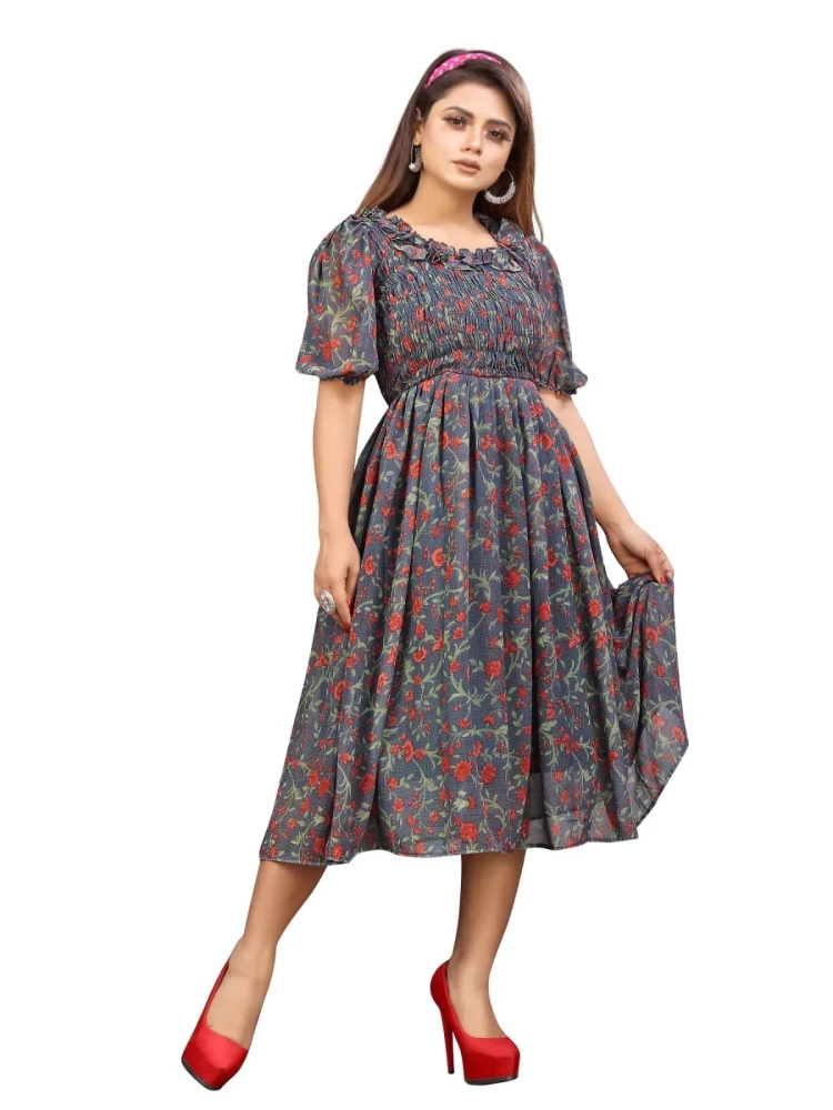 Introducing our stunning Women's Georgette Printed Grey Dress, designed to elevate your style with elegance and charm. Crafted from premium Georgette fabric, this dress embodies both comfort and sophistication, making it an ideal choice for any occasion.