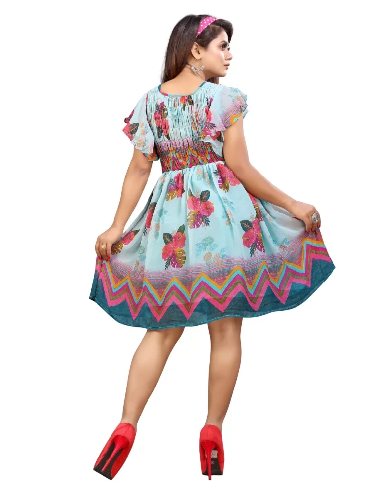 Women Georgette printed Sky Knee Lenth Dress