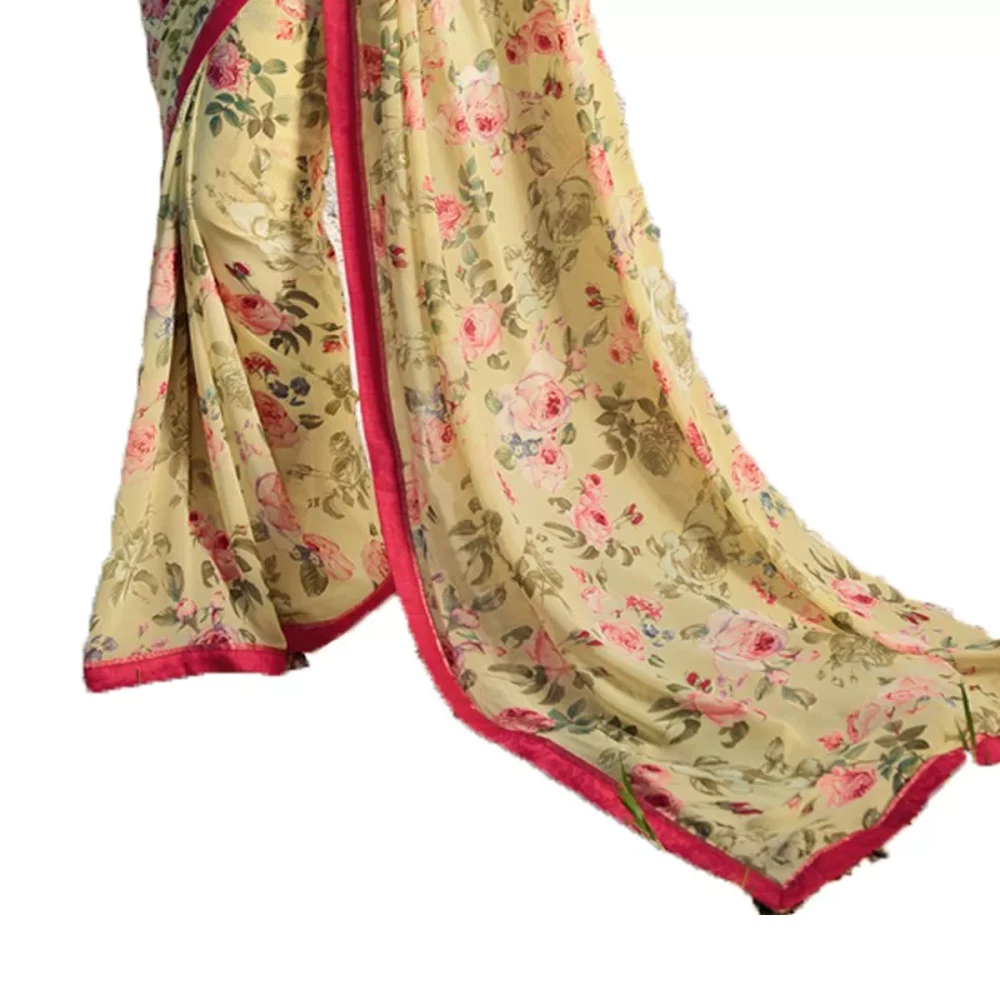 Womens Floral Printed Georgette Beige Saree