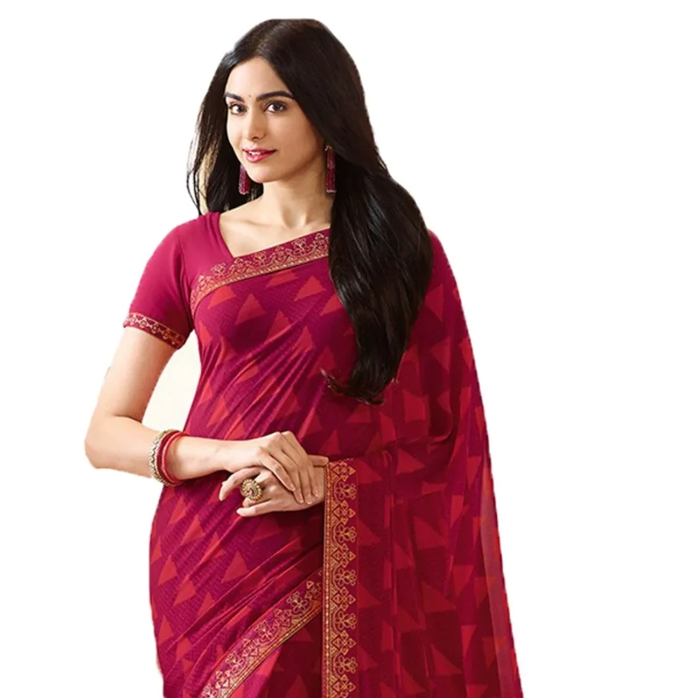 Elevate your style with our Women's Printed Georgette Pink Saree with Plain Blouse, a stunning ensemble that effortlessly blends traditional charm with contemporary flair. Crafted from premium georgette fabric in a vibrant pink hue, this saree exudes elegance and sophistication, making it perfect for a variety of occasions. Paired with a chic plain blouse made from Banglory fabric, this saree offers a timeless yet modern look that is sure to turn heads.